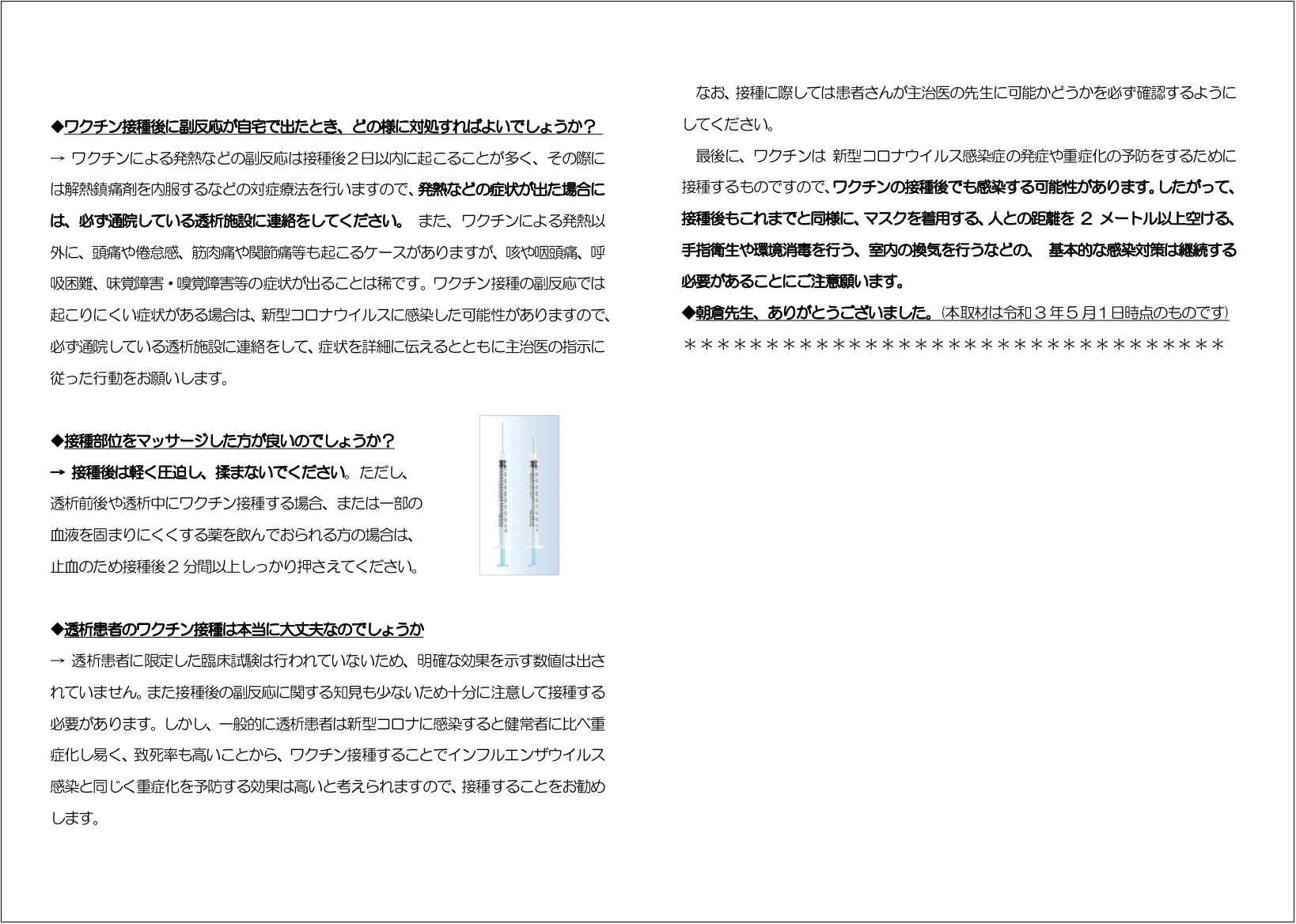 栃腎友だよりにコロナウイルスワクチンについての話が掲載されました。
