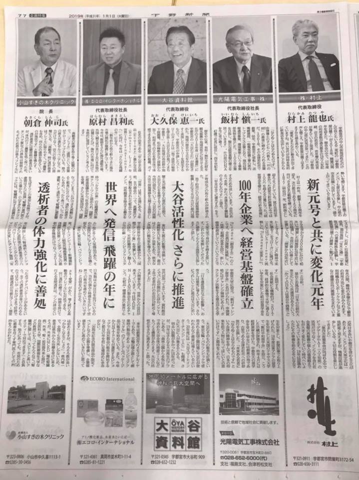 下野新聞(しもつけしんぶん)の新春特集に、朝倉院長の記事が掲載されました。