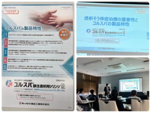 ジフェリケファリン(コルスバ)は、痒みを抑制するKOR選択的な作動薬であり、抗掻痒作用を示します。透析終了後の返血時に透析回路から注入する、静注のプレフィルドシリンジ製剤。
