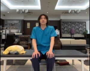 Exercise therapy is performed online.I did stretching exercises that incorporated the elements of baseball.