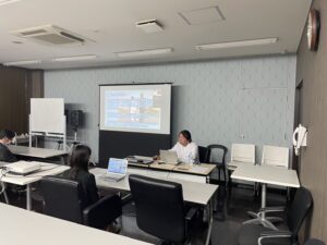 Kaga, the head of the general nursing department, was in charge of the in-house training session for pharmaceutical companies (Ono Pharmaceutical), and talked about the activities of the World Travel Dialysis Medical Network (WTDM).
